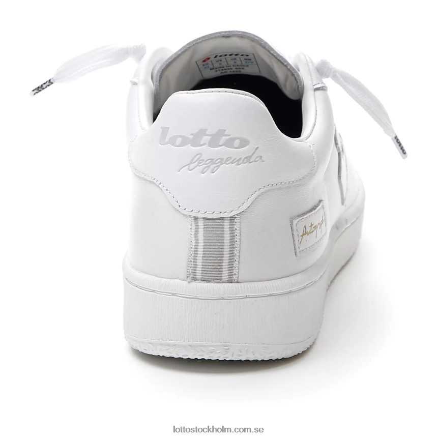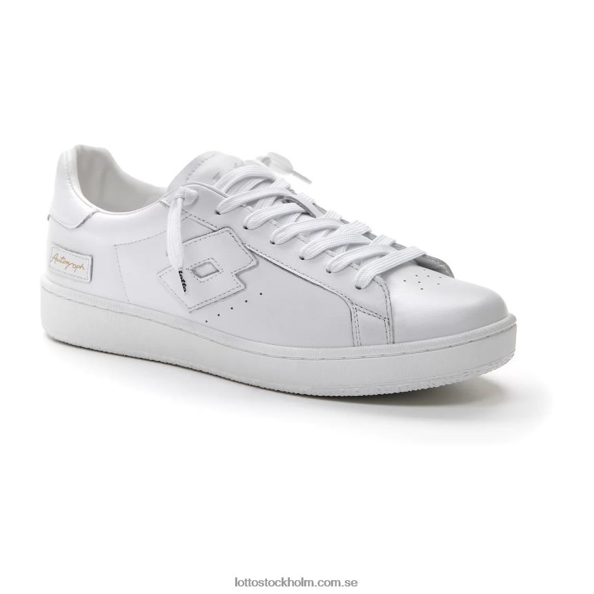 autografmodellen lotto leggenda ger stolt liv till den ikoniska lottostilen från 70- och 80-talen. tennisinspirerade sneakers för män designade med låg sula och mjuk vit ovandel i nappaläder. modell hyllar lottos historiska och oöverträffade idrottssjäl. i den här versionen föreslås skon i en total vit look, där namnet på guldautografen på en upphöjd lapp i hälområdet sticker ut.