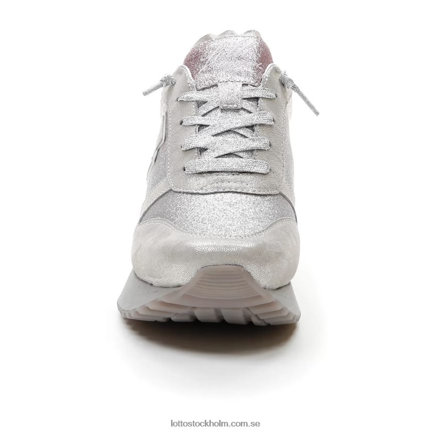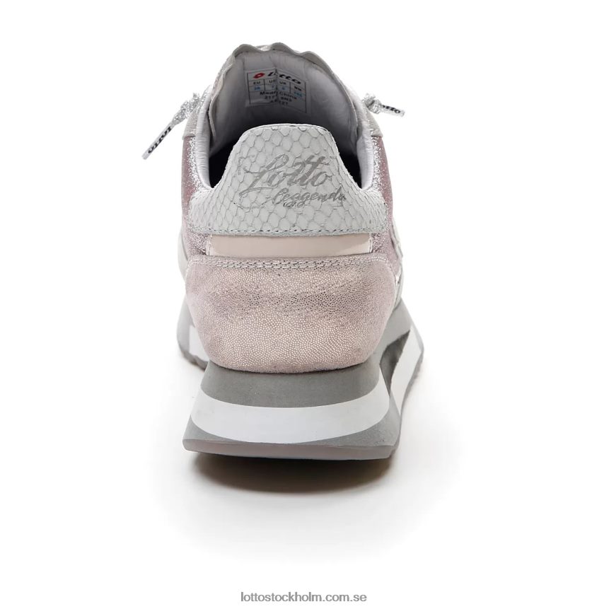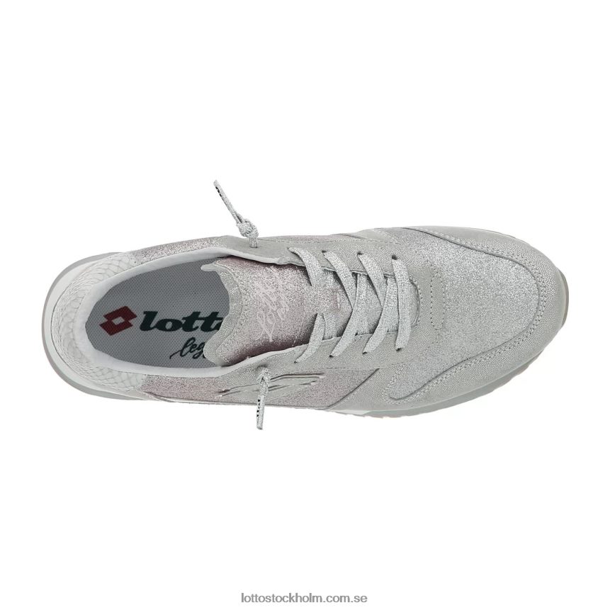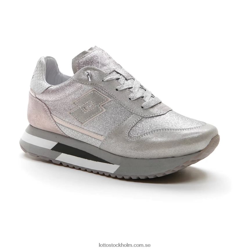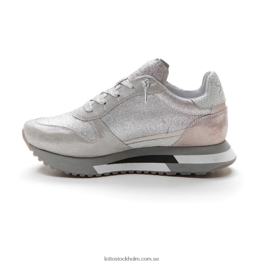 lotto leggenda tokyo wedge damsneaker i silverversion med glitterläder och tyg och klack med pythoneffekt. baserad på solida idrottsrötter och kan omtolka det förflutna med nya visioner, hämtar den inspiration från retrolöpande modeller, 70- och 80-talen, med tillägget av en samtida sensibilitet. den höga sulan, tillägnad kvinnor och föreslagen med en textur i grå nyanser, ger fart och personlighet kombinerat med komfort och dämpning.