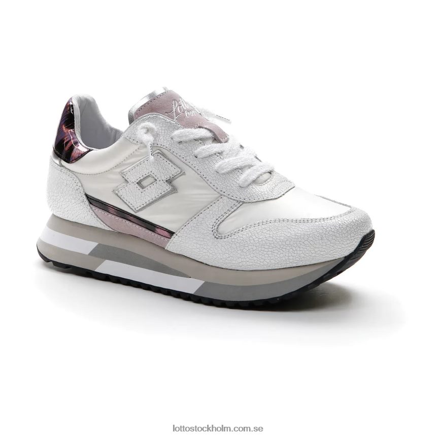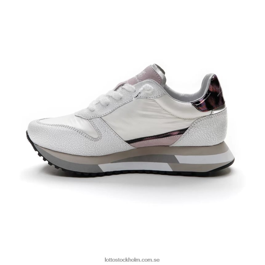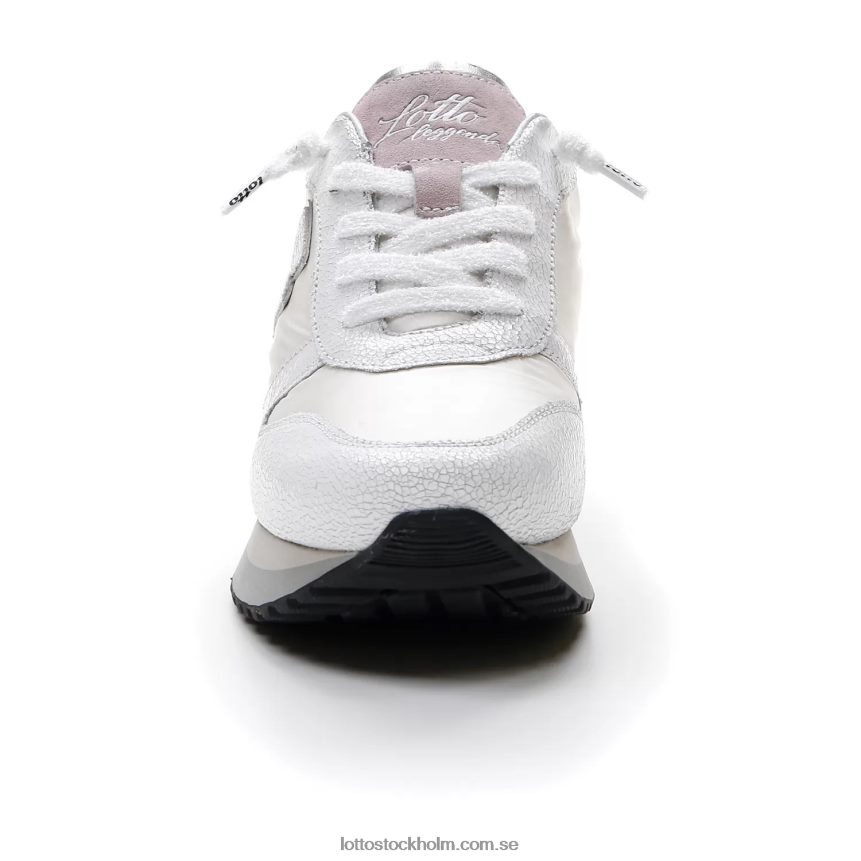 lotto leggenda tokyo wedge damsneaker kombinerar vitt crack-läder, nylondetaljer och metalliska inlägg för en omisskännlig design. baserad på solida idrottsrötter och kan omtolka det förflutna med nya visioner, hämtar den inspiration från retrolöpande modeller, 70- och 80-talen, med tillägget av en samtida sensibilitet. den höga sulan, tillägnad kvinnor och föreslagen med en textur i grå nyanser, ger fart och personlighet.
